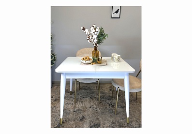 Стол обеденный Орпен опоры белый/столешница белый сатин ЛДСП Стекло