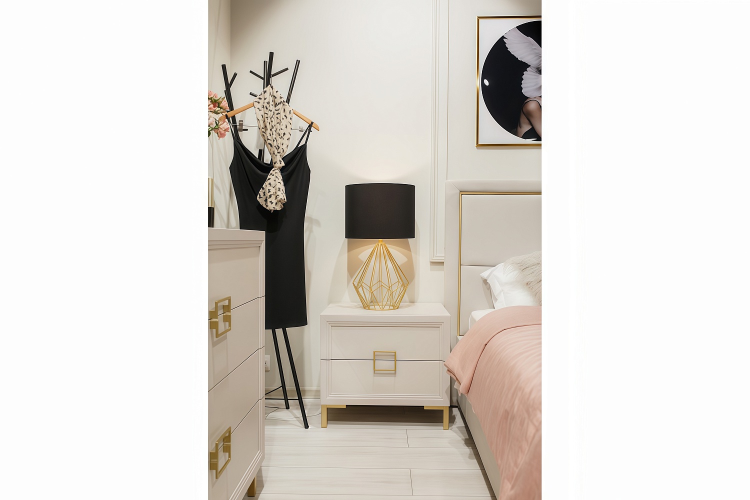 – описание: стиль ар-деко, минимализм, цвет кашемир серый, назначение для спальни, размер 53.8x60.1x45.1 см.