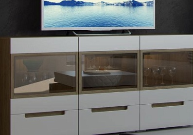 - элегантного комода с одним выдвижным ящиком и тремя отсеками с откидной дверцей.