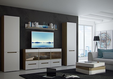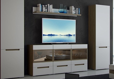 Вся мебель устанавливается на прочные широкие ножки, однако во избежание опрокидывания модули рекомендуется крепить к стене. Каркасная часть изготовлена из ламинированной ДСП толщиной 16 мм, фасады произведены из облицованной ПВХ-пленкой МДФ. Кромки отделаны высокопрочным кромочным материалом. Петли, оснащенные доводчиком, скрытые направляющие, демпферы обеспечивают комфортную эксплуатацию комплекта.