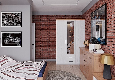 Шкаф Изотта с зеркалом Белый премиум ST24 (древесные поры)