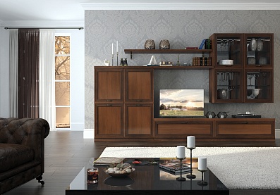 Тумба Кантри под телевизор с выдвижными ящиками Блан шене